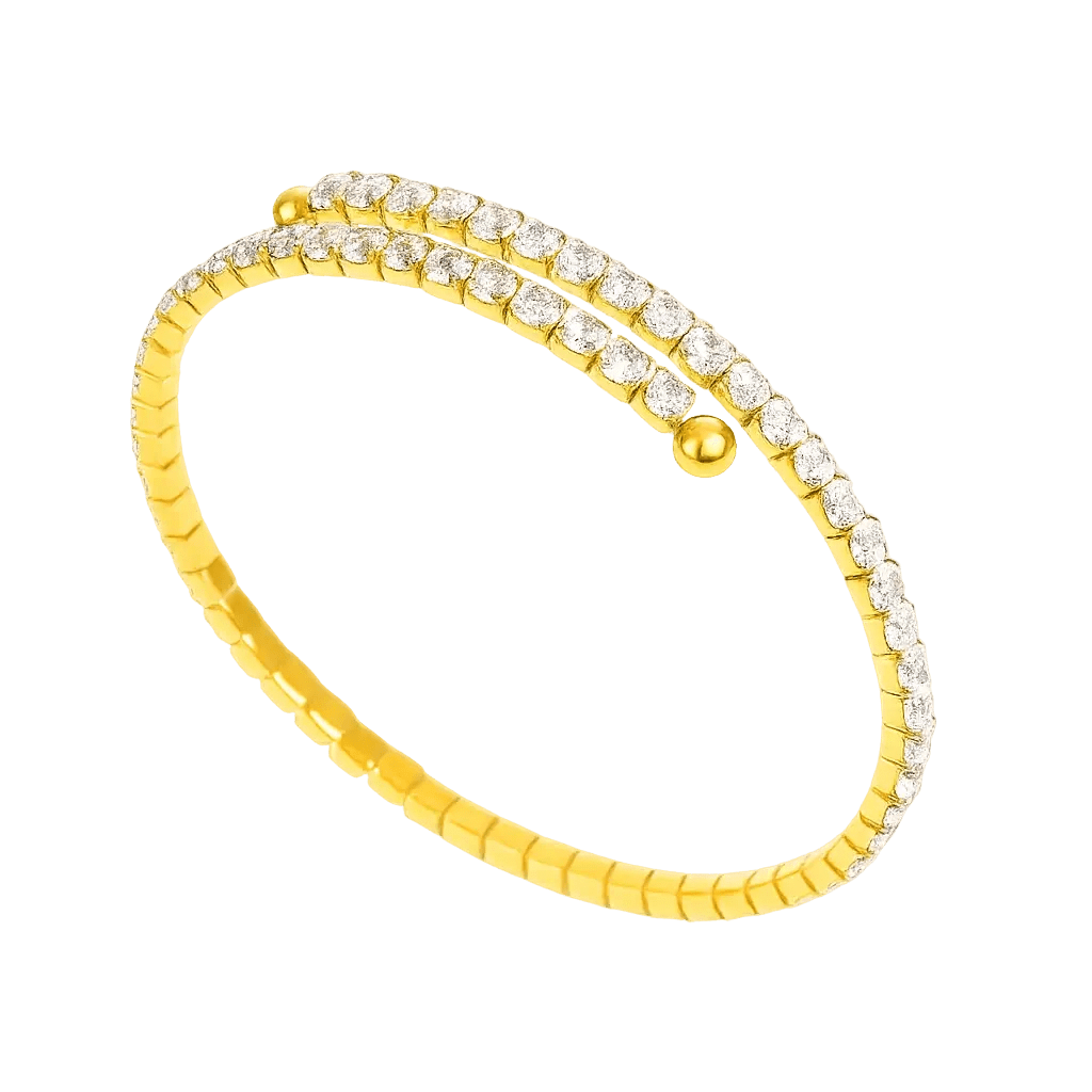Aureline is a golden spiral bangle encrusted with two rows of radiant crystals — designed to wrap your wrist in refined brilliance. Whether stacked or worn solo, it elevates every moment.
