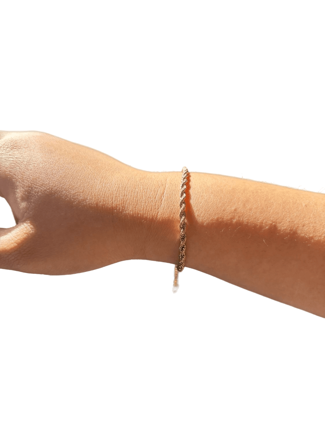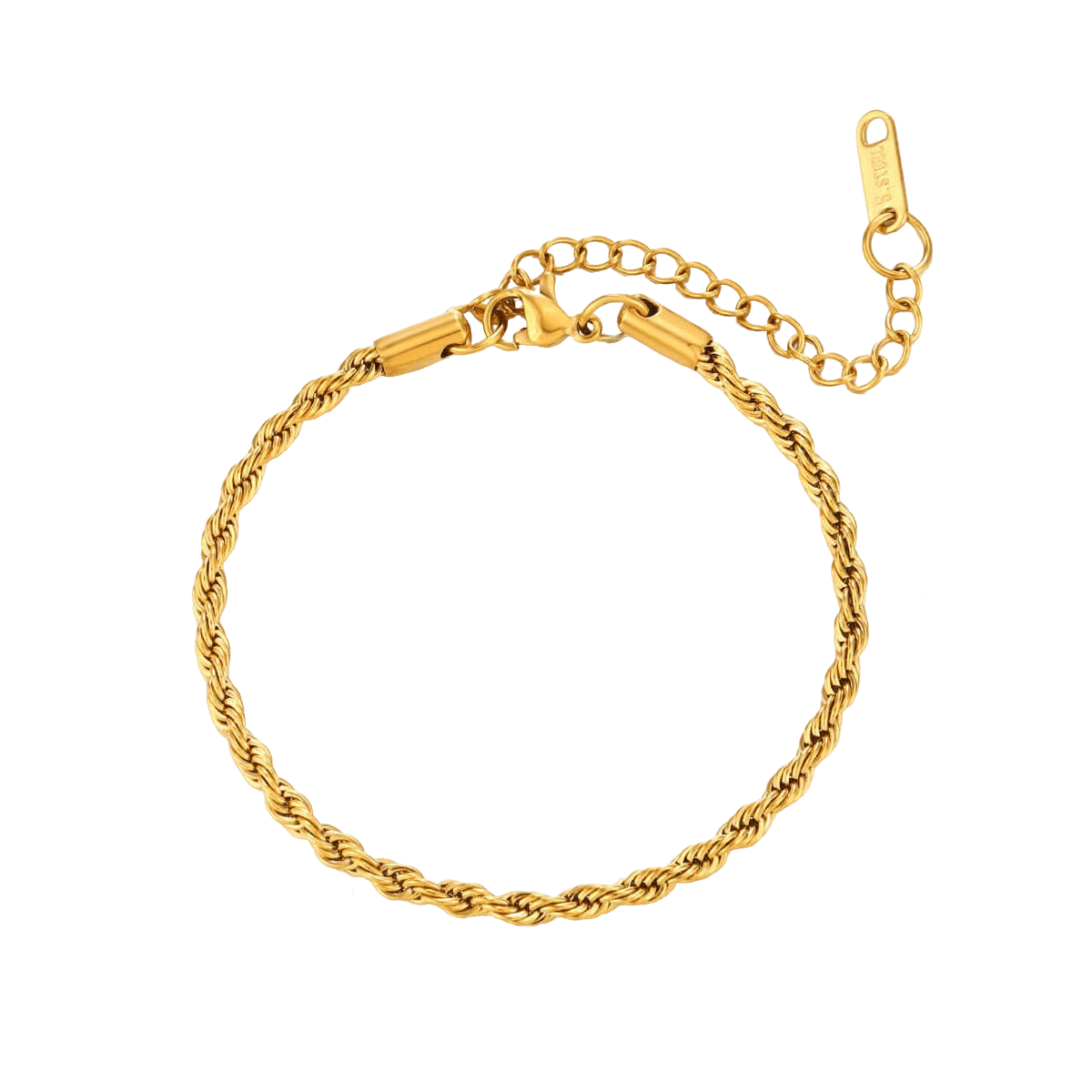 The Caelora Bracelet channels celestial elegance through a timeless twisted rope design. Crafted in stainless steel and luxuriously plated in 18K gold, this bracelet is waterproof, skin-friendly, and tarnish-resistant. Whether worn solo or layered, Caelora brings soft strength and radiant simplicity to your everyday style.