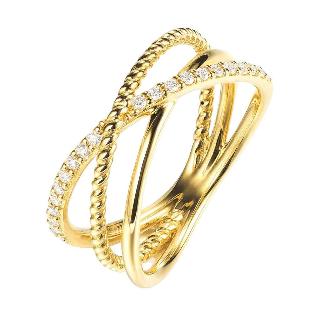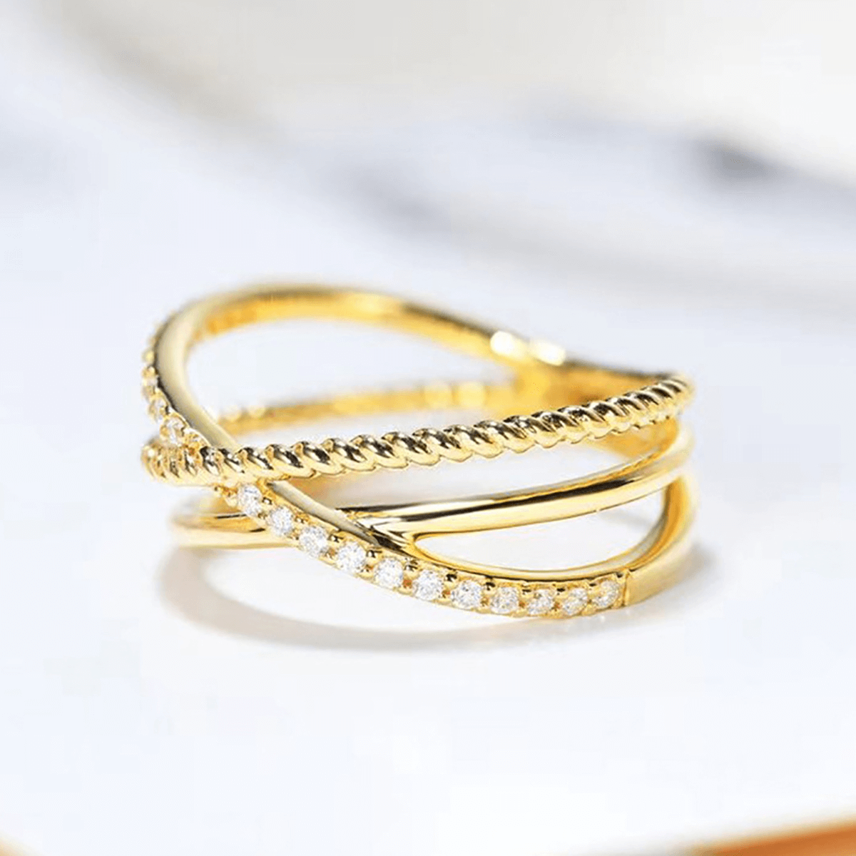 Step into sophistication with Celvara, a gold ring crafted to captivate. Featuring intertwined bands – one sleek, one twisted, and one lined with sparkling stones. Celvara is a celebration of timeless elegance with a modern twist. Perfect for daily wear, stacking, or gifting, this piece brings refined luxury to every moment.