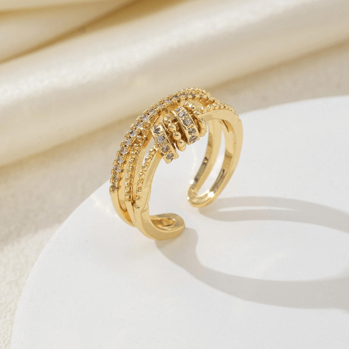 The Elyndra Ring is a striking blend of elegance and power, crafted with radiant gold and adorned with shimmering crystals. Its layered band design symbolizes unity, strength, and timeless beauty. Perfect for elevating everyday style or making a bold statement, Elyndra captures the essence of modern luxury.