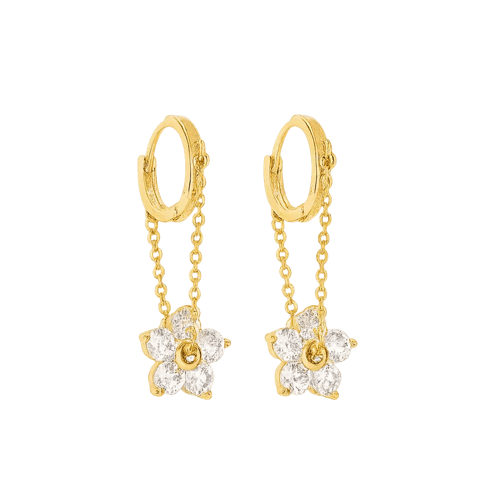 Florelle earrings bring together the sparkle of floral stones and the elegance of dangling gold chains.