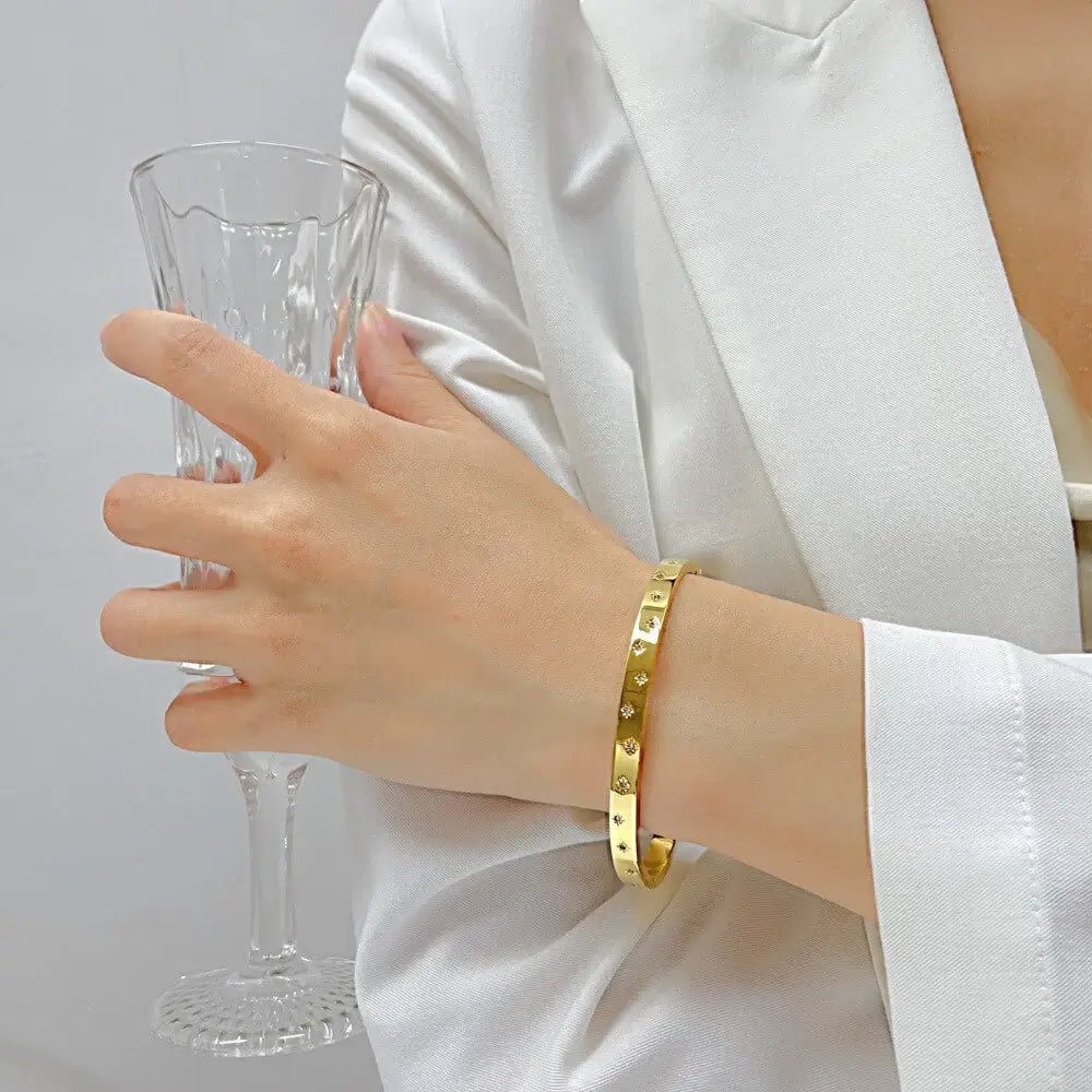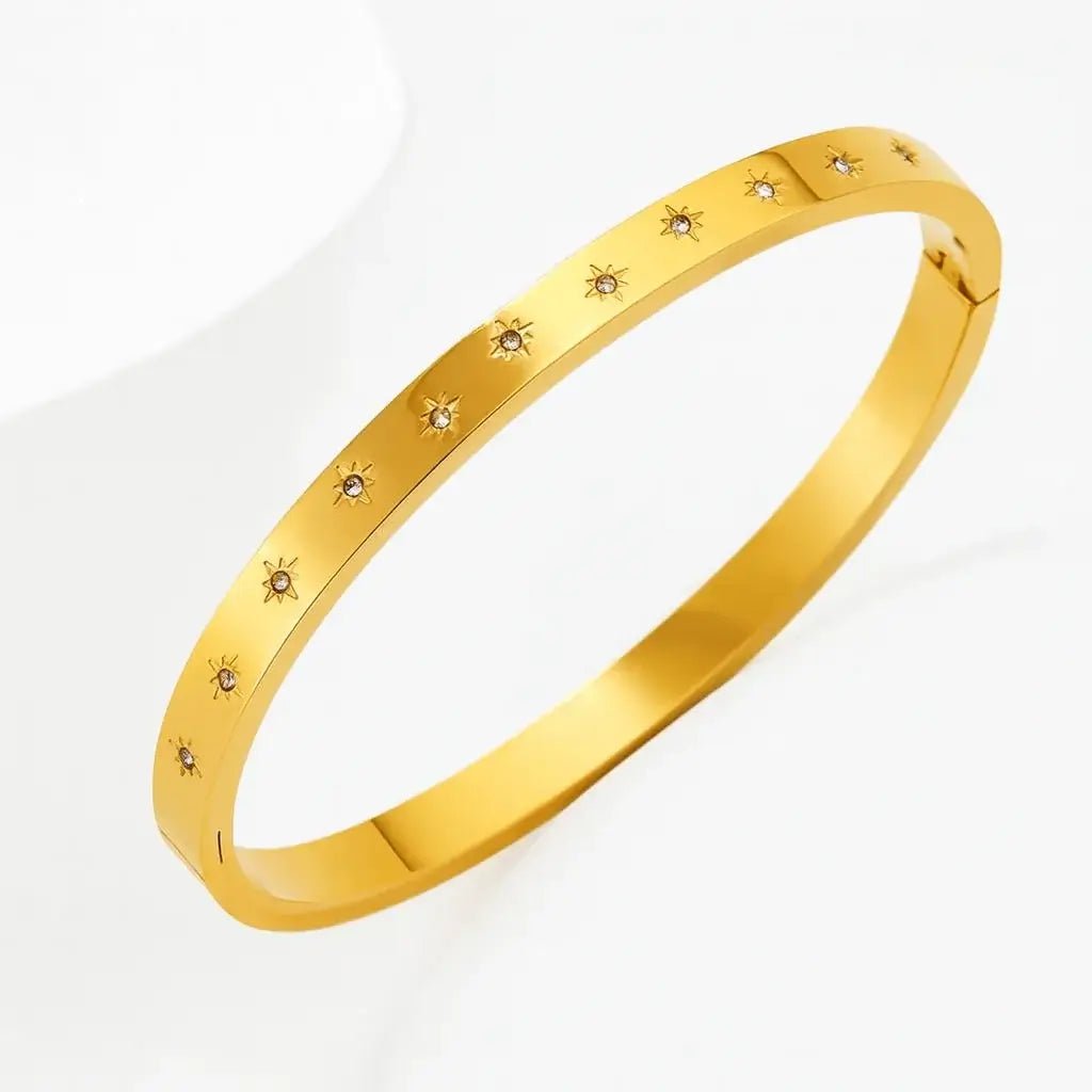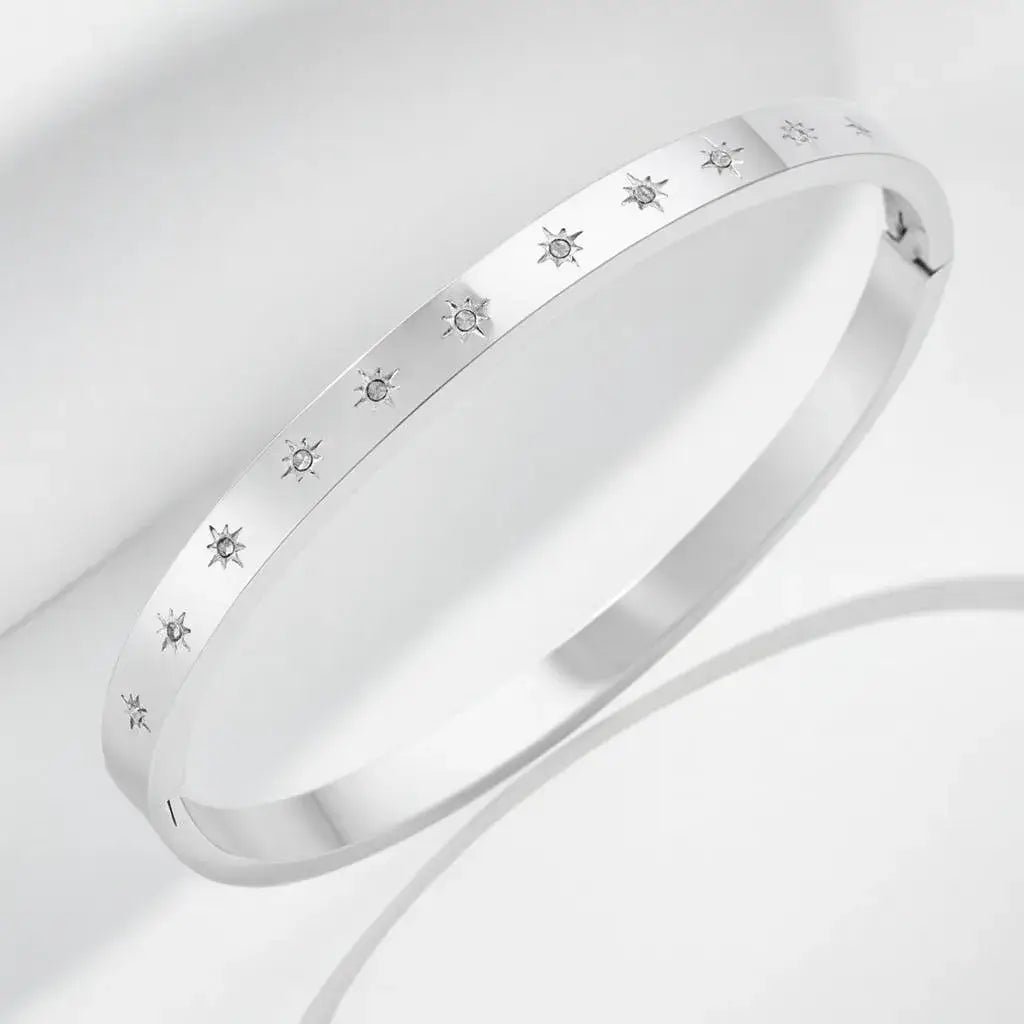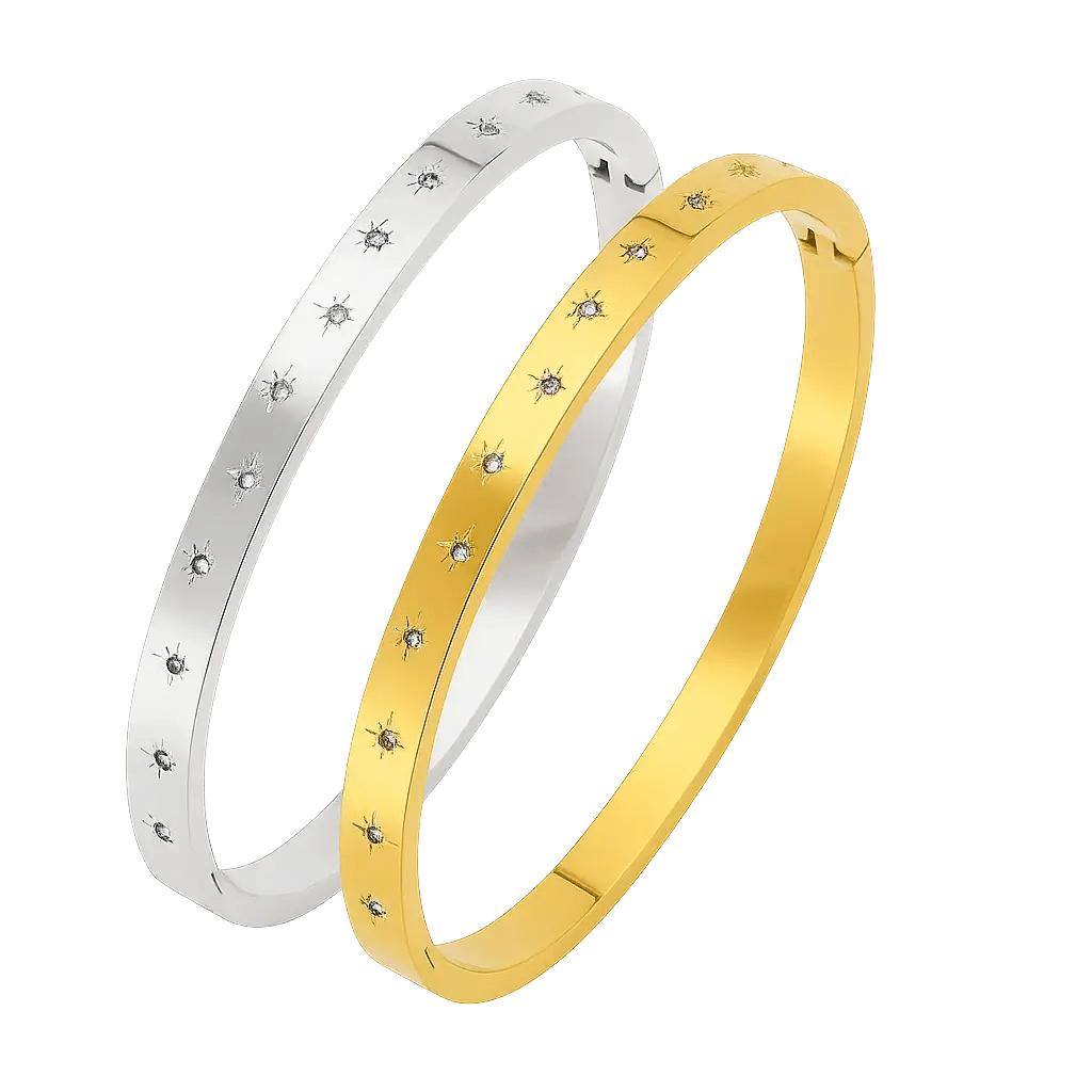 Lumora is where light meets elegance. Blending the warm glow of gold with the serene shine of silver, it creates a timeless harmony on your wrist. Each star-engraved detail captures the beauty of the night sky, adding a touch of magic to your everyday style. Whether worn alone or stacked, Lumora is designed to make you shine.