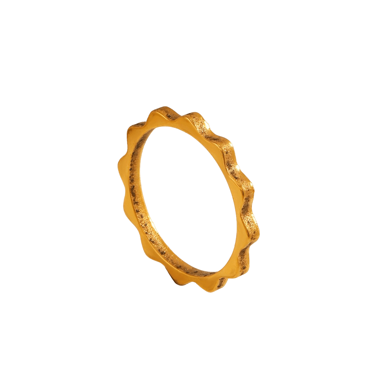 The Maris Ring brings the fluid elegance of ocean waves to your jewelry collection. Its delicate wavy-edge design adds texture and character, making it perfect for stacking or wearing solo. Crafted with a waterproof, hypoallergenic finish, Maris is designed for effortless, everyday elegance.