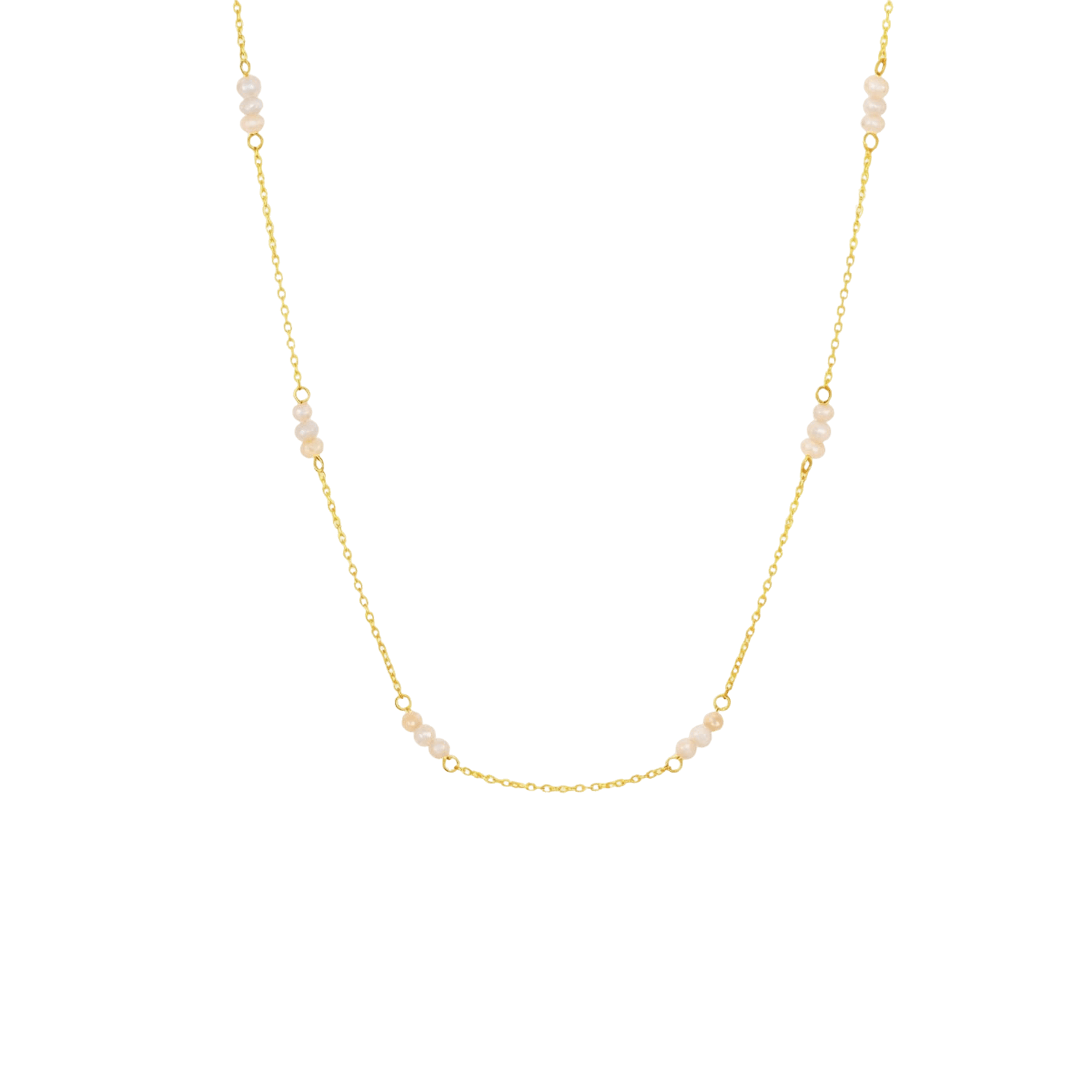 Evoke the spirit of the sea with Nerissa, a graceful necklace crafted from freshwater pearls delicately set along a dainty 18K gold-plated stainless steel chain. Waterproof and skin-friendly, this minimalist piece embodies effortless elegance and timeless charm. Whether worn alone or layered, Nerissa adds a touch of luminous sophistication to every look.