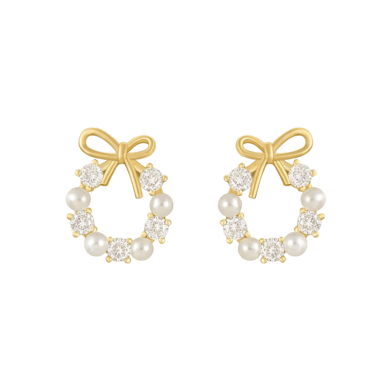 Add a touch of delicate charm to your look with the Petaline Earrings. These beautiful stud earrings feature a graceful gold-plated bowknot, encircling luminous faux pearls and sparkling cubic zirconia crystals. Designed to evoke the elegance of a blooming flower wreath, Petaline is perfect for special occasions, birthdays, or simply elevating your everyday style. Lightweight.