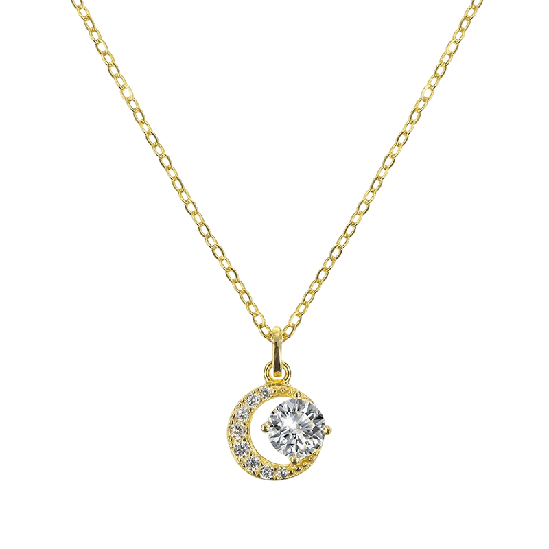 Let your inner glow shine with Soleya, our moon-inspired gold necklace. Featuring a delicate crescent encrusted with brilliant cubic zirconia stones, this pendant cradles a radiant solitaire, symbolising timeless love and celestial beauty. Crafted in polished gold plating, Soleya is the perfect touch for elegant nights or meaningful gifts.